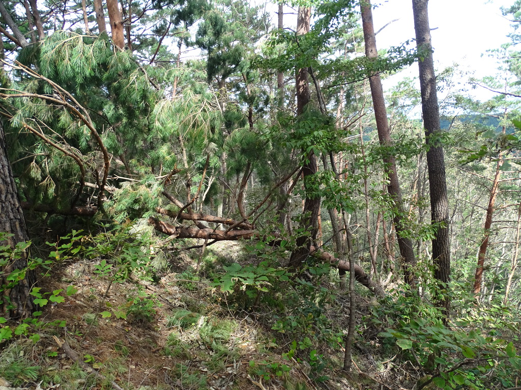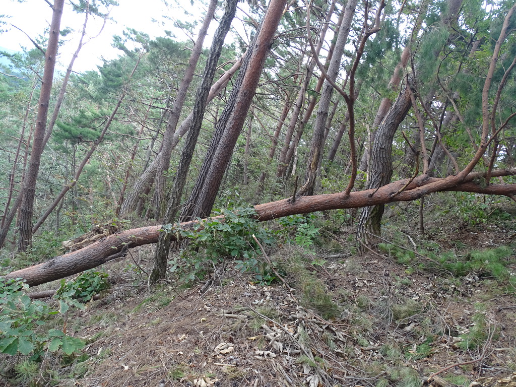 태풍으로 인하여 나뭇가지가 부서져있었고 굵은 금강송 두그루가 넘어져있었습니다.