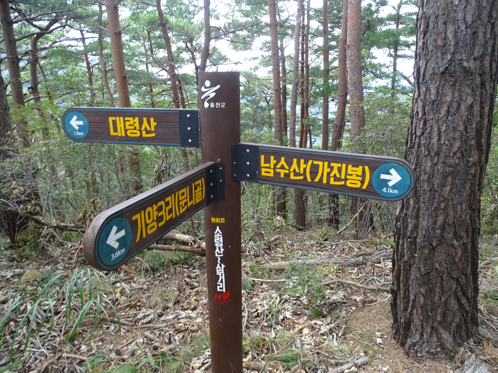 산행코스:기양리 저수지→대령산→소령산→남수산→매화2리 울진 농협기술센터
