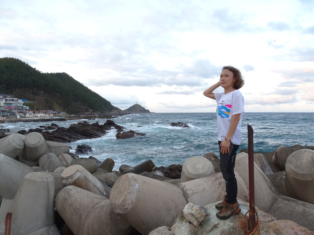 축산항 차유마을에 도착해서 횟집앞 방파제에서 사진놀이를 하고