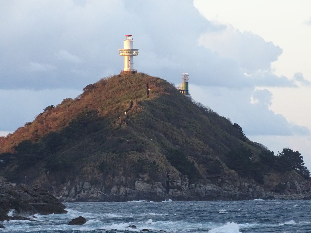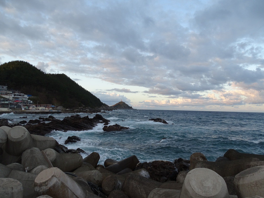축산항 등대섬을 배경으로
