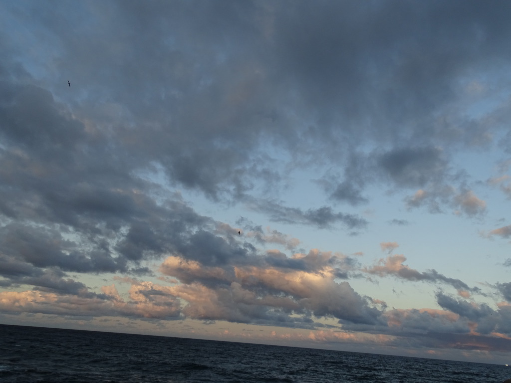 멋진 수평선과 갈매기 저녁노을