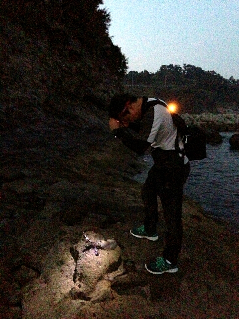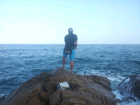 오후 4시부터해서 무늬오징어 사냥에 나섭니다. 돈지의 갯바위입니다