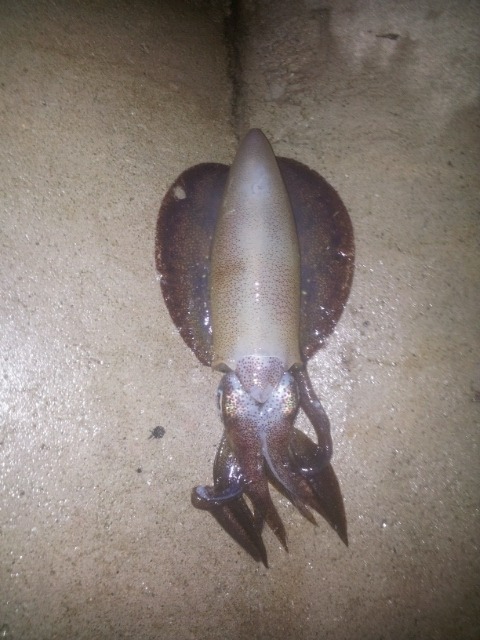 10분 후 올해 6번째 무늬오징어 700g 급의 사이즈 실한놈이 올라옵니다.