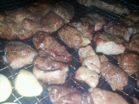 목살에 통마늘구이 입니다... 저는 바베큐할때 삼겹살보다 목살을 선호 하는편입니다.