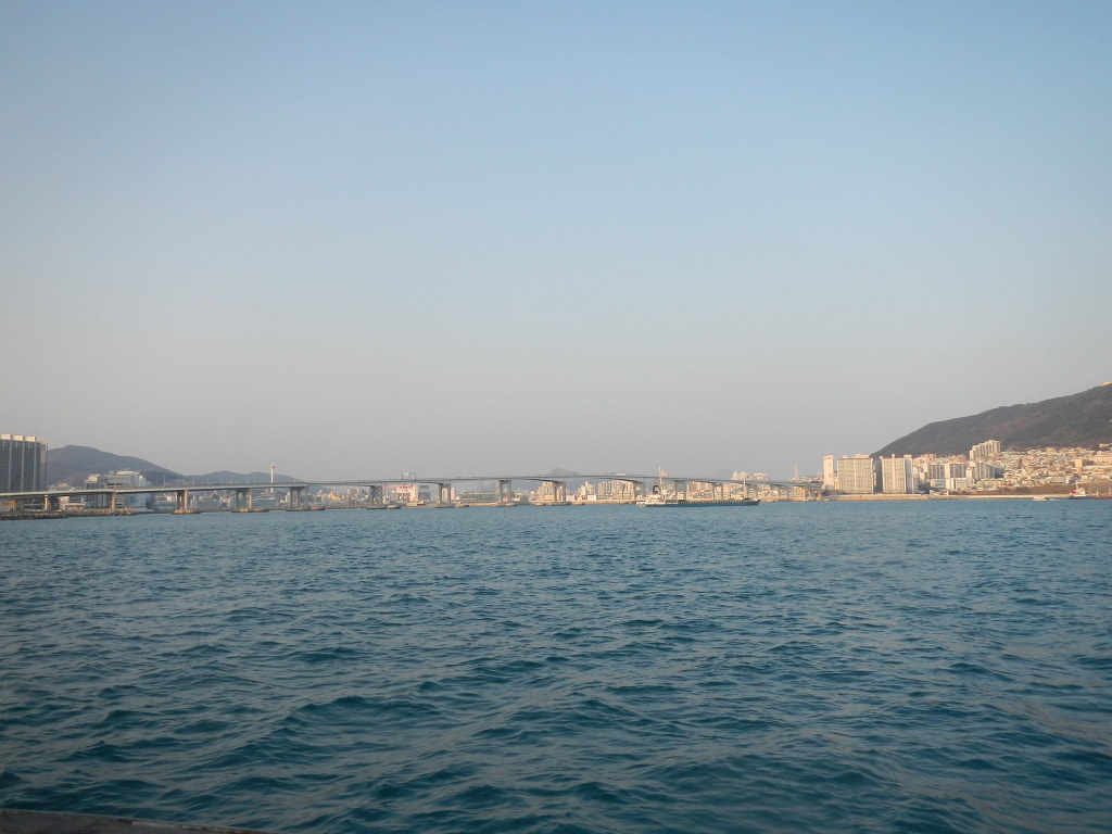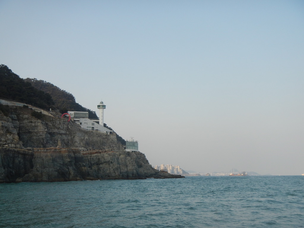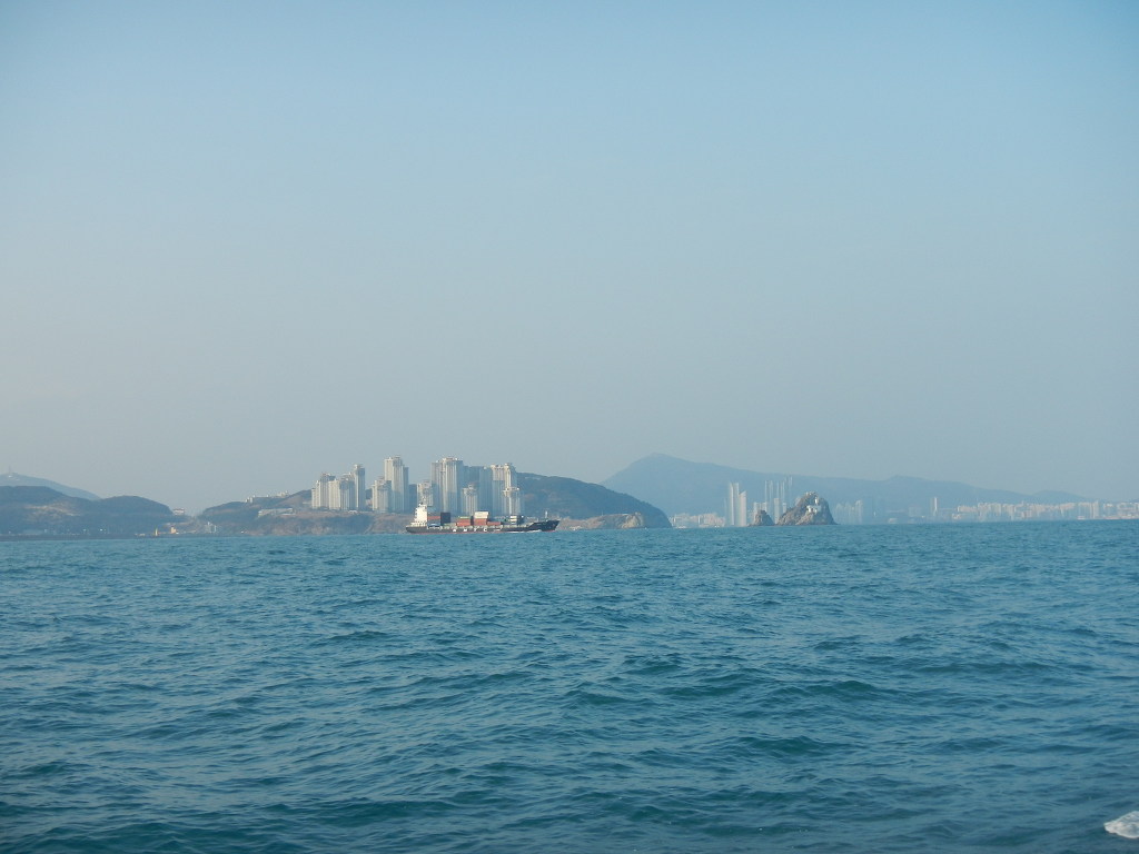 부산항을 빠져나오는 컨테이너 선박들도 그림에 점을 하나 더 찍어주고....