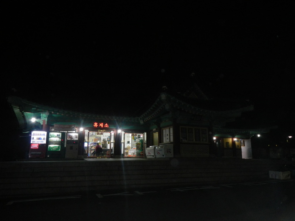 3월 7일 밤 8시에 지지대 고개 휴게소에 도착하여 출조점 버스를 기다립니다.