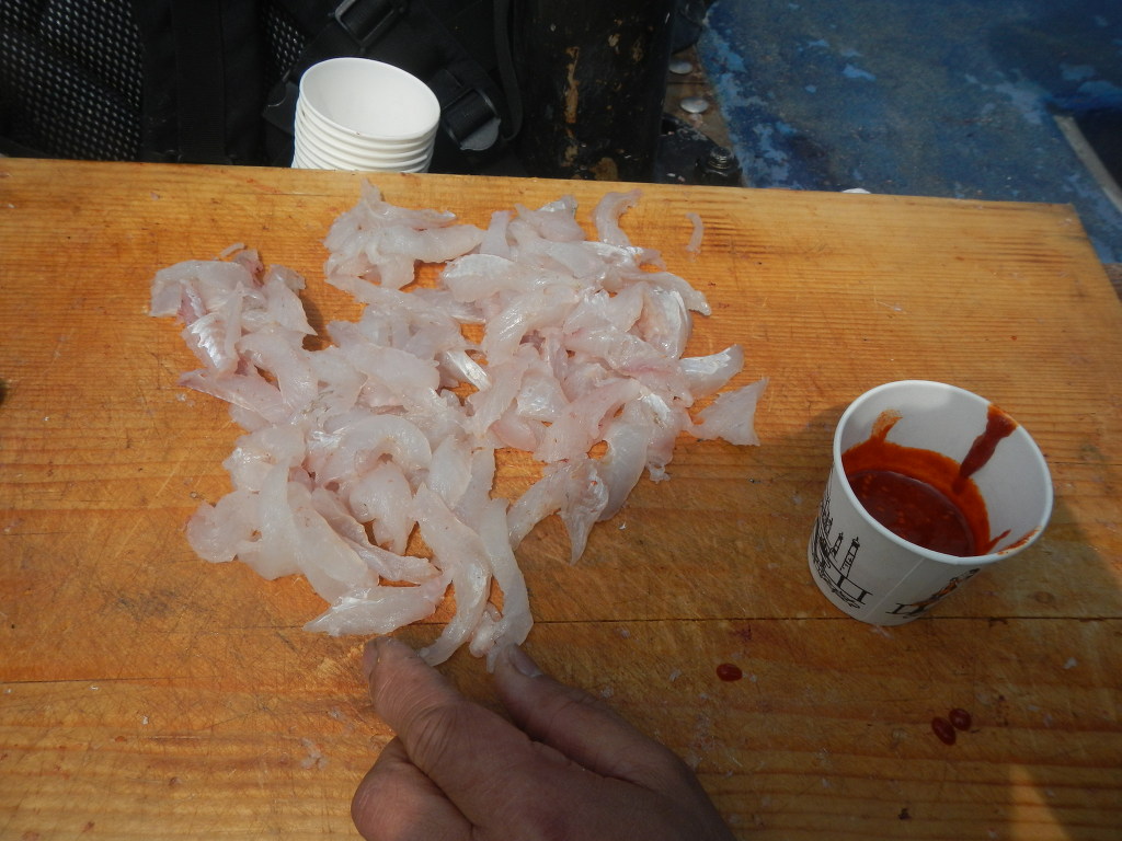 몇 시간을 배타고 달려가 낚시라는 중노동 해야하는 낚시인들이라 맛과는 크게 상관않고 먹습니다.
