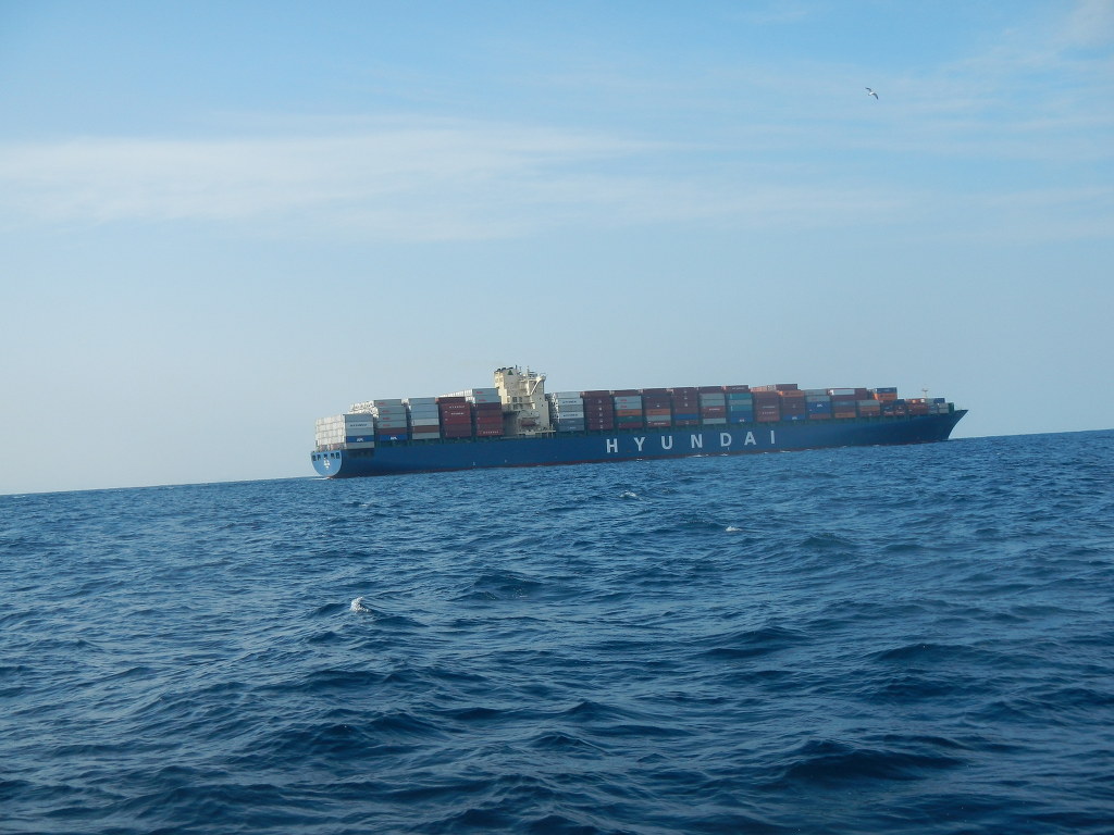 오후 2시에 낚시를 마치고 철수하는데 울산 근처의 바다에 커다란 컨테이너선이 자태를 뽐내고 있습니다.