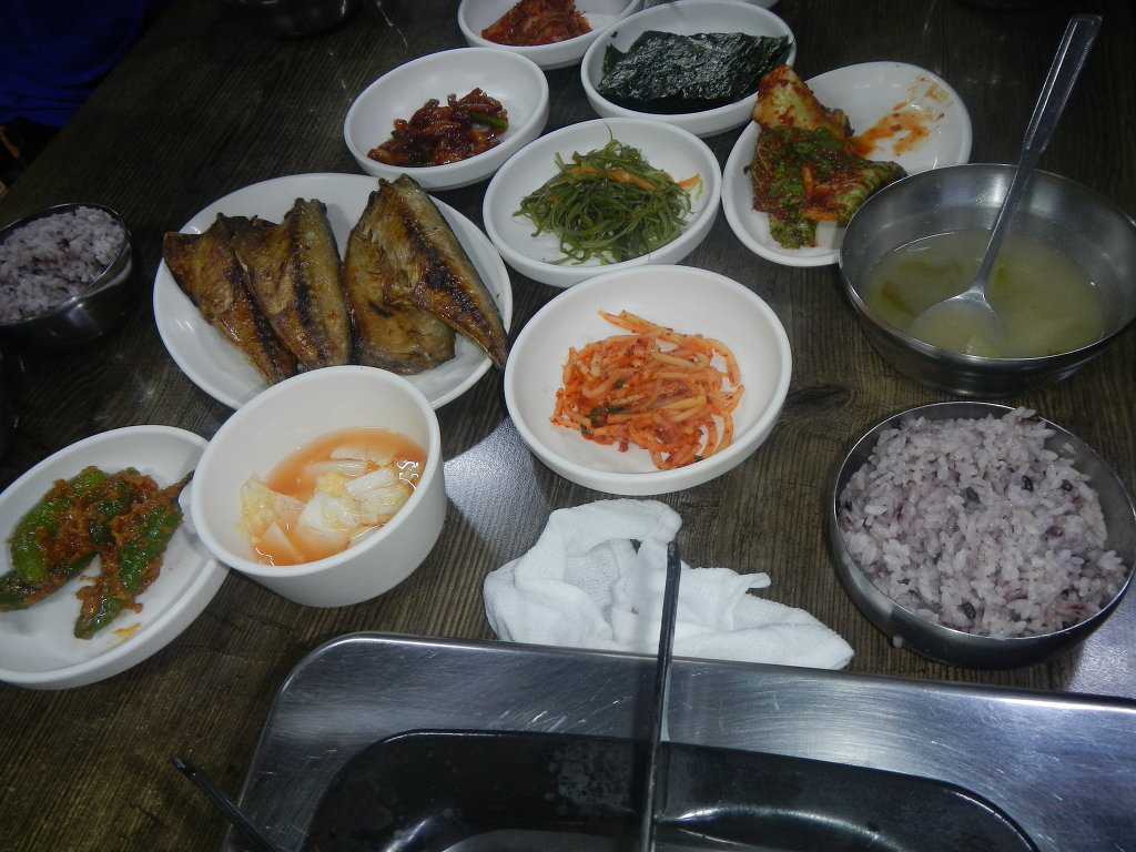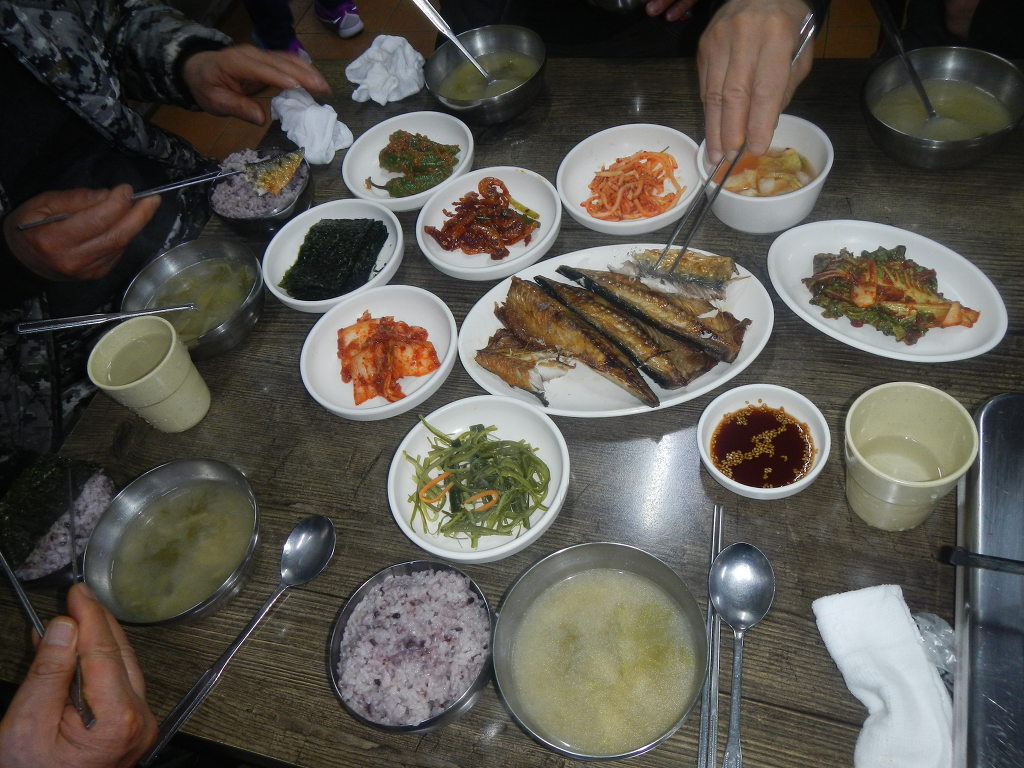 고속도로를 타고 부산 송도에 도착하여 먼저 기사식당을 찾아 들어가 이른 조반을 먹습니다.