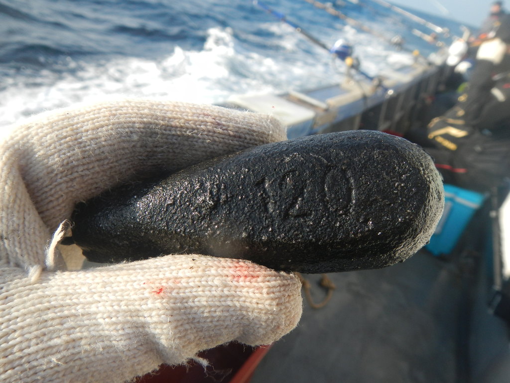 수심이 135m 전후인 6광구 홍감펭 낚시에서 봉돌은 120호를 사용합니다.