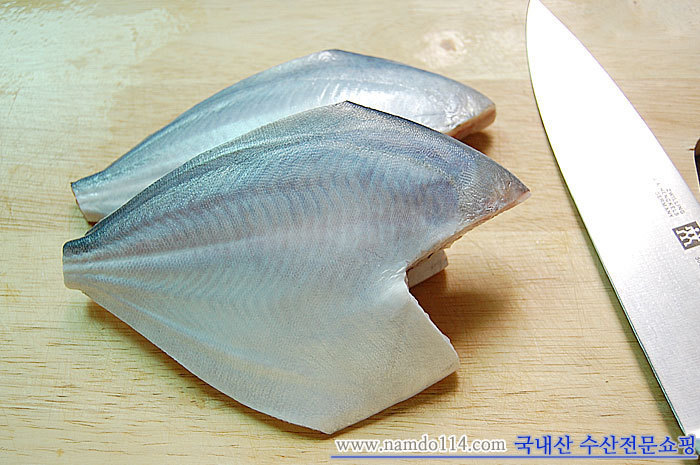 이때 병어를 사선으로 놓고 썰어야 잔뼈가 역으로 짤려서 씹히는 맛이 더 좋습니다.