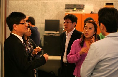 기자, PD등이 함께 이야기를 나누고 있는 중, 어제의 일이 관심사였다.