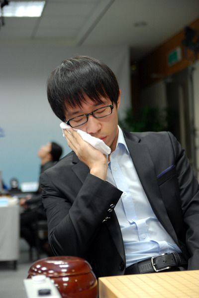 ▲ 격전을 벌이고 있는 구리 9단. 작심을 하고 나온 듯하다. 승부의 추는 아직 한쪽으로 기울지 않았다.