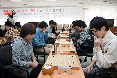 ▲ 3회 비씨카드배 통합예선이 펼쳐지고 있는 한국기원 2층 대회장.