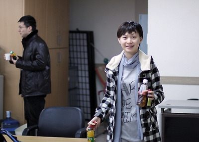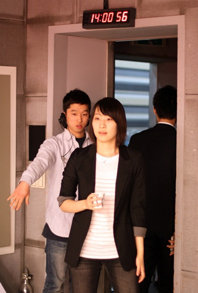 ▲스튜디오에 입장하는 김미리 초단. 작년 바둑리그 후에 기회가 없어 아주 오랜만이라고 한다.