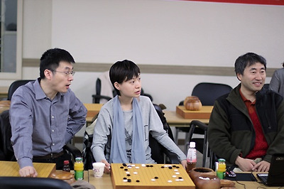 ▲중국팀 단장 왕레이 8단과 탕이 2단. 장주주 9단의 건너편에는 항상 루이 9단이 앉아있다.