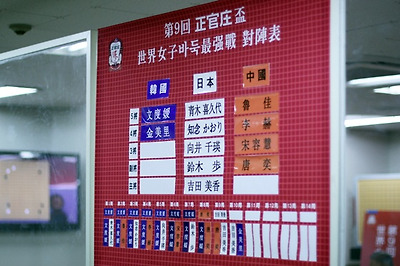 ▲검토실에 걸린 대진표. 한국 4명, 일본 1명, 중국 1명의 선수가 남았다.
