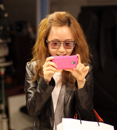 ▲결승대회장을 찾아 복기장면을 촬영하는 이세돌 9단의 부인 김현진씨. 국후 건넨 첫 마디는 "수고했어!"