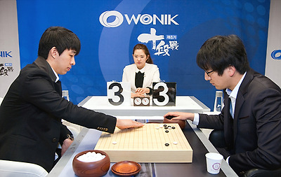 ‘유장한 바둑이라면 박영훈 9단이 강점을 보이지 않을까. 백 바둑이라면 역시 박영훈 9단 아닐까.’ 이런 고민이었을 것이다. 돌을 가려 맞히면 흑 백을 선택할 권리가 있는 원익배 십단전에서 한웅규 4단은 백을 들고 박영훈에게 흑을 들게 했다. 감각적 속기파, 그리고 전투에 강한 한웅규는 분규를 원했을 것이다. 그러나 그런 내용은 나오지 않았다. 박영훈의 노련한 운영과 정교한 끝내기만이 빛을 발했다. 25일 밤 9시 서울 성동구 홍익동 바둑TV스튜디오에서 열린 제8기 원익배 십단전 4강전에서 박영훈이 한웅규에게 242수 끝에 흑4집반승 거뒀다. - 이 바둑을 바둑TV에서 해설한 윤현석 9단은 “한웅규 4단이 끌려다녔고 뭔가 해볼 기회를 얻지 못했다. 중반 이후는 박영훈 9단이 완벽하게 정리했다”고 말했다. 국후 박영훈 9단은 “초반은 팽팽했는데 중반에 상대에게서 느슨한 수가 나와서 그로 인해 우세해질 수 있었다. 하지만 계가를 확신한 것은 좀 더 나중에 후반에서였다”고 말했으며, 12연승의 호조를 보이고 있는 것에 대해서는 “본디 연승에 강하지 못한 편이라 입단 이후 가장 좋은 연승 기록 아닌가 싶을 정도다. 무리를 좀 해서 20연승 정도 거둘 수 있다면 좋을 것 같다. 원익배는 1기 때 결승에 오른 것 빼고는 그다지 인연이 없었는데 이번에 힘을 내겠다.”고 말했다. 이로써 박영훈은 결승에 선착하며 이 대회 첫 우승을 노리게 됐다. 반대편 준결승전 강동윤 9단과 김승재 5단 간 승자와 결승에서 만나게 된다. 이 대국은 26일 밤 9시에 사이버오로 대국실과 바둑TV에서 중계된다. 제8기 원익배 십단전의 우승상금은 5000만원. 제한시간은 10분에 초읽기 40초 3회다. 결승전은 3번기로 진행된다. ![]() ▲ 돌을 가렸다. ![]() ▲ 초반전을 진행하고 있는 한웅규(왼쪽)와 박영훈. ![]() ▲ 생각하는 박영훈. ![]() ▲ 생각하는 한웅규. ![]() ▲ 인터뷰하고 있는 박영훈. | |||