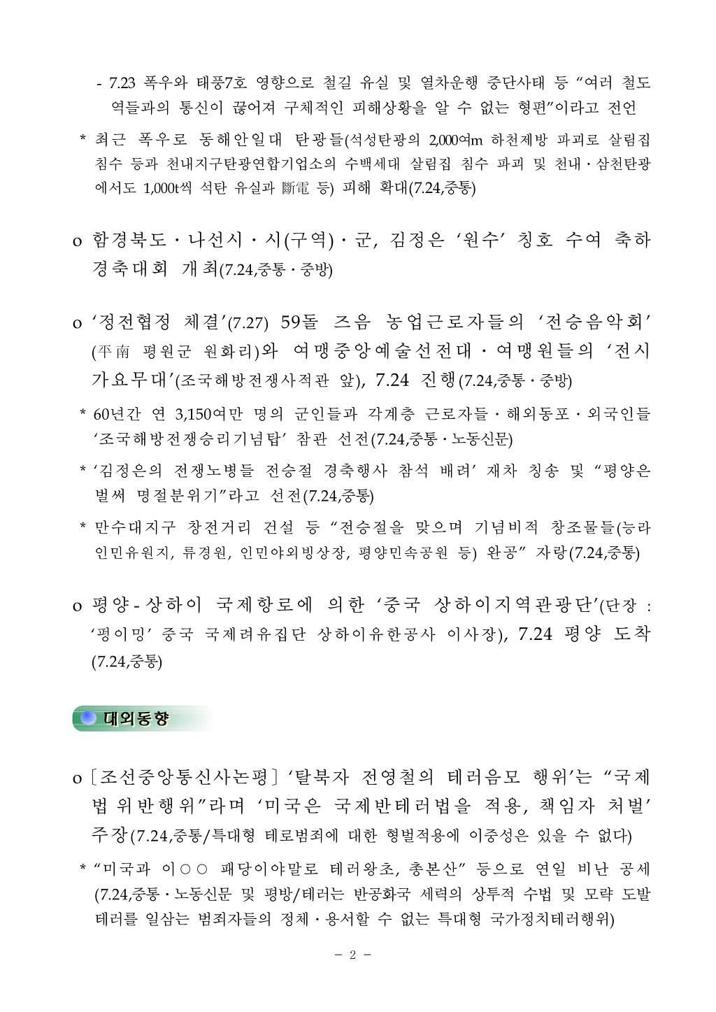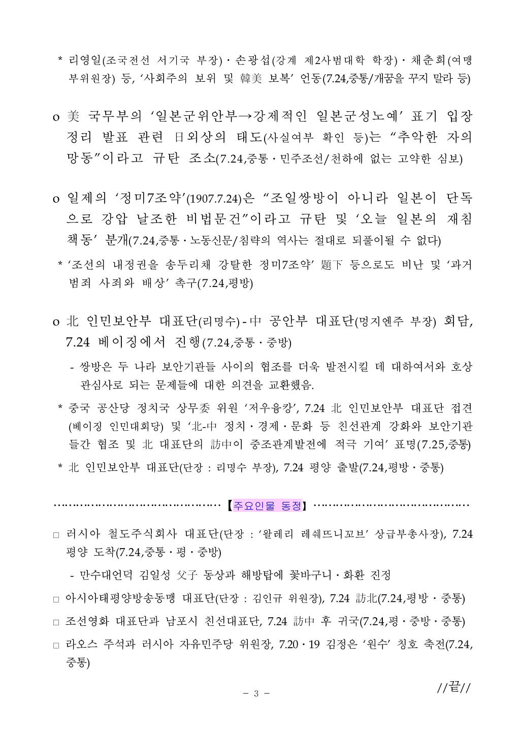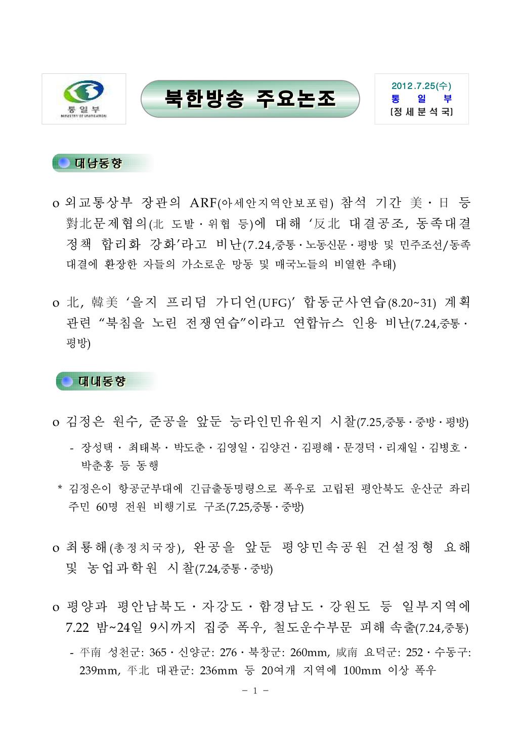 [통일부] 북한 방송 주요 논조 2012년 7월 25일 작성자신들의 황혼|작성시간12.07.25|조회수17 목록 댓글 0 글자크기 작게가 글자크기 크게가 120725.pdf 첨부파일첨부된 파일이 4개 있습니다. jpg 파일 120725_01.jpg 다운로드 jpg 파일 120725_02.jpg 다운로드 jpg 파일 120725_03.jpg 다운로드 pdf 파일 120725.pdf 다운로드 다음검색 현재 게시글 추가 기능 열기 북마크 공유하기 신고 센터로 신고 댓글 댓글 0 댓글쓰기 답글쓰기 댓글 리스트