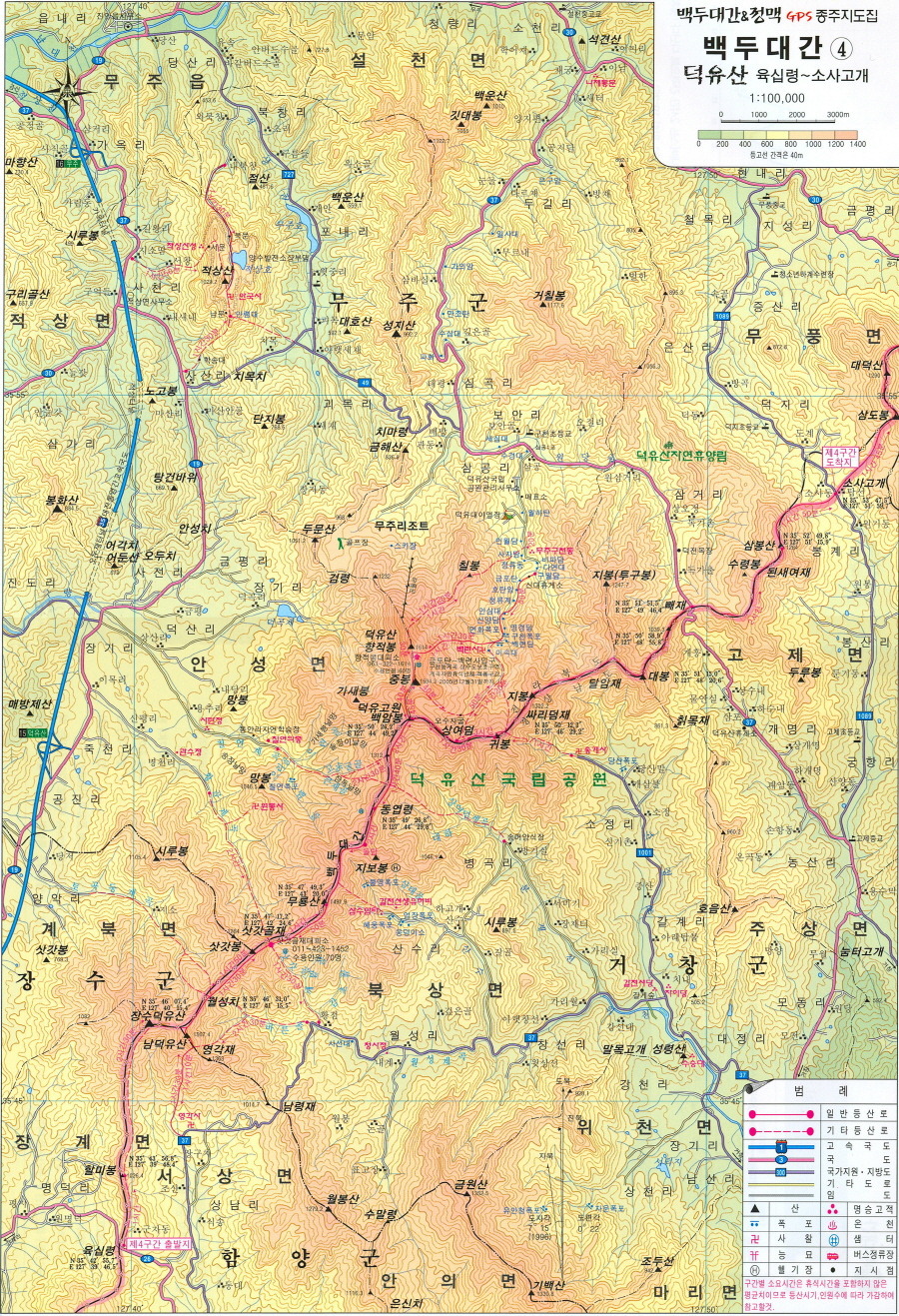 산행경로 : 황점-삿갓골재-삿갓골재대피소-무룡산-동엽령-병곡)