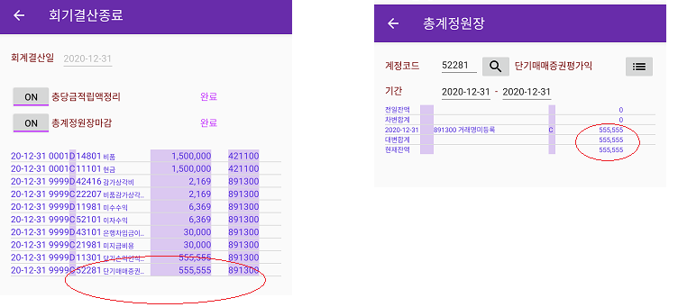 * 총계정원장자료 = 회기간동안 발생한 계정 입출내역 + 결산일 보정기표자료 + 결산기표자료