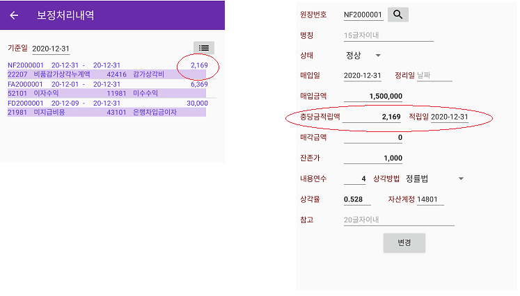반영됩니다. 회기 중 감가상각비 관련 계정처리 및 원장변경을 수작업으로 하였다면 보정자료가 정당한지 확인하여야
