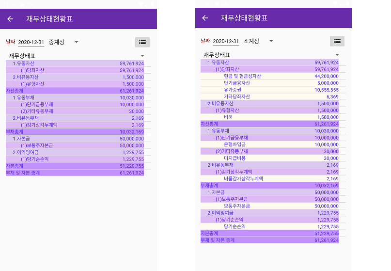 유동자산과 비유동자산의 구분이 집계계정으로 추가되었으므로 기존의 합계잔액시산표 계정코드는