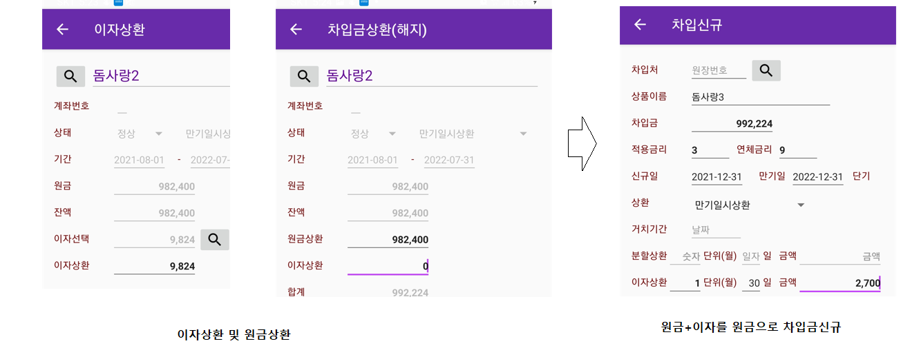 이제 차입금과 이자금액을 합한 금액으로 차입금을 신규 등록합니다.