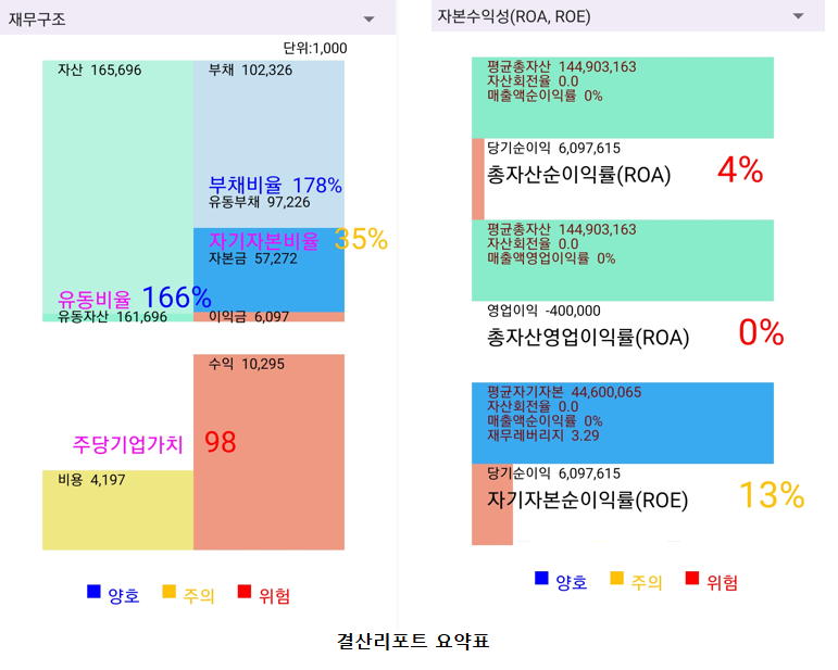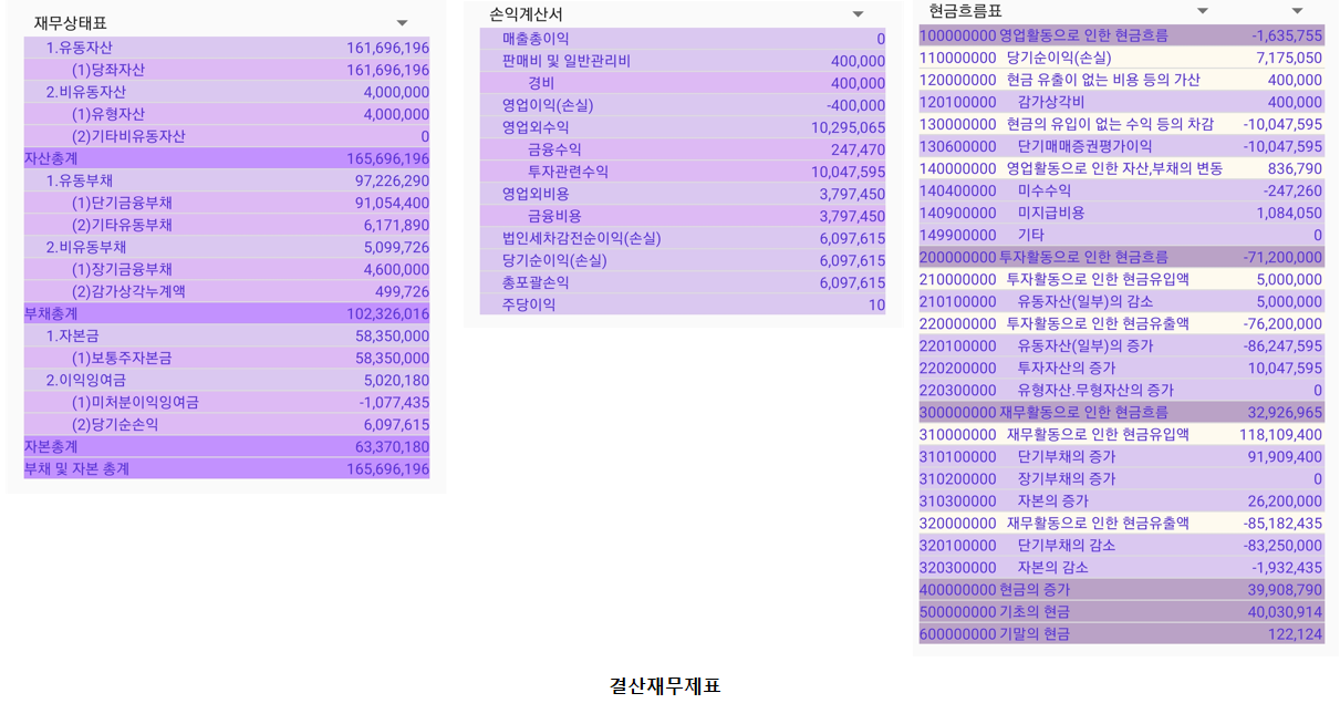 이제 다양한 결산재무정보를 메인화면의 간략한 표로 볼 수 있습니다.