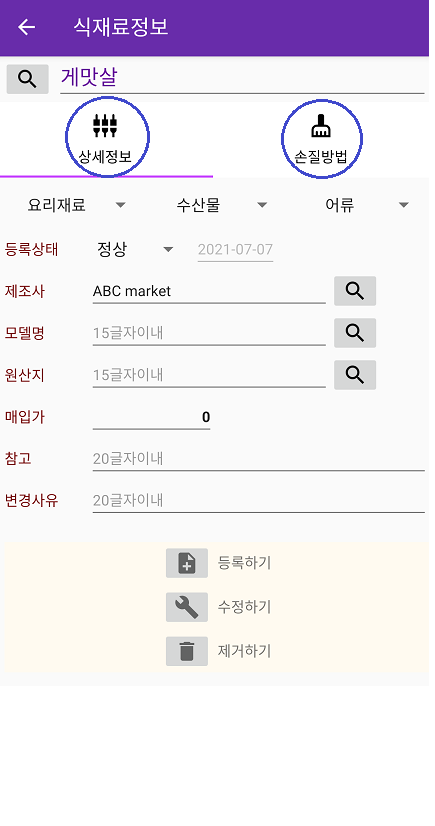 식재료정보를 따로 관리하면 식재료의 특성이나 손질하는 방법 등 상세하게 노트할 수 있고 또한 각각의 레시피에서 공유해서 사용할 수 있어 효과적입니다.