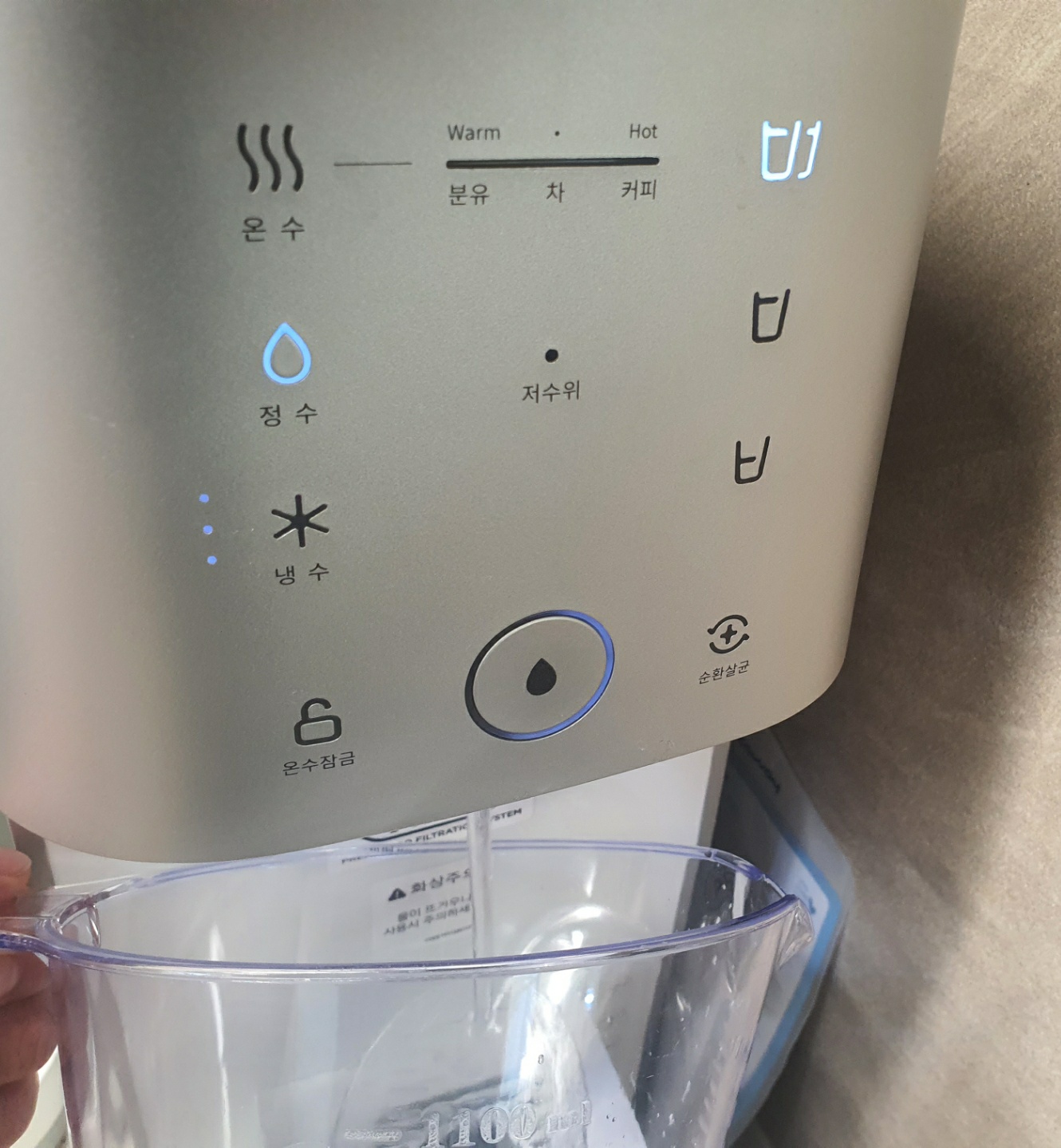 요즘 정수기에는 500ml 버튼을 누르면 딱 맞게 나와서