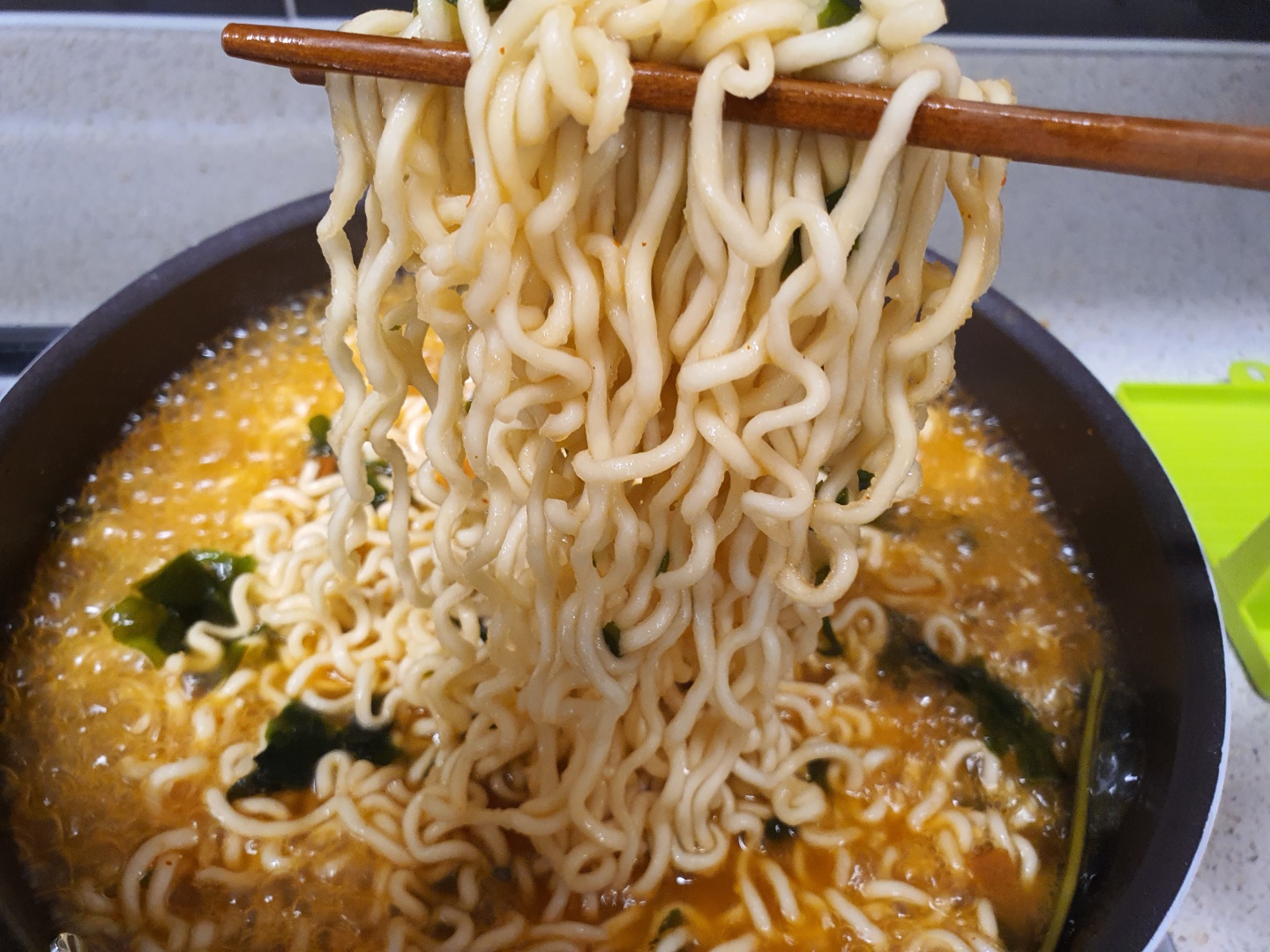 당신마늘과 라면이 잘 섞이도록 해줍니다.