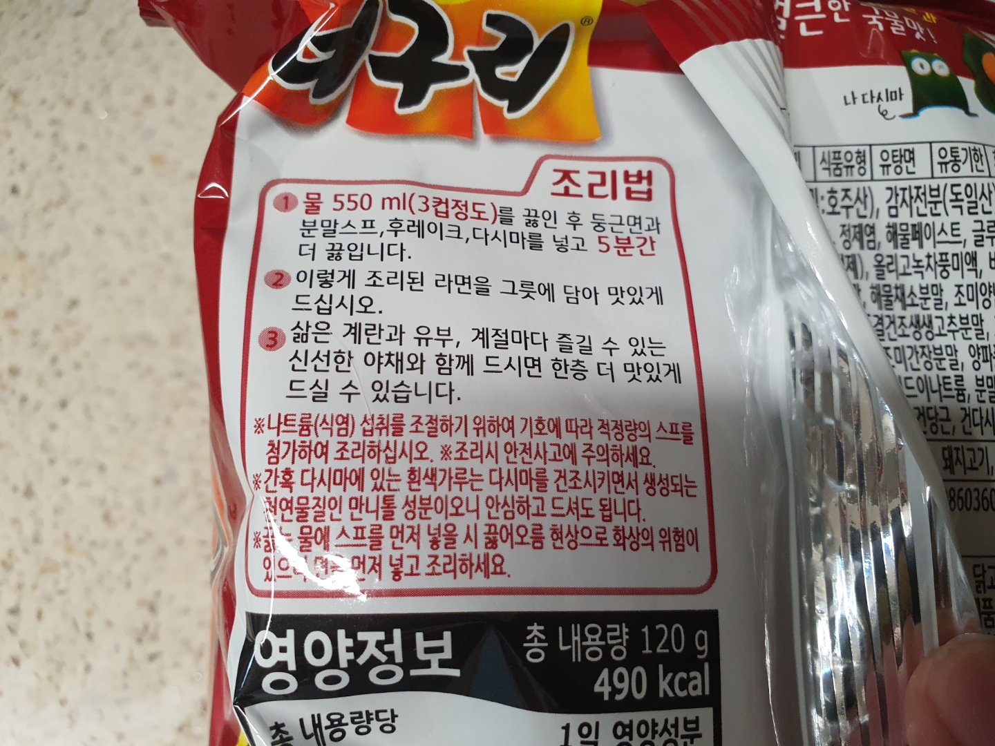 라면 봉투에 써있습니다.
