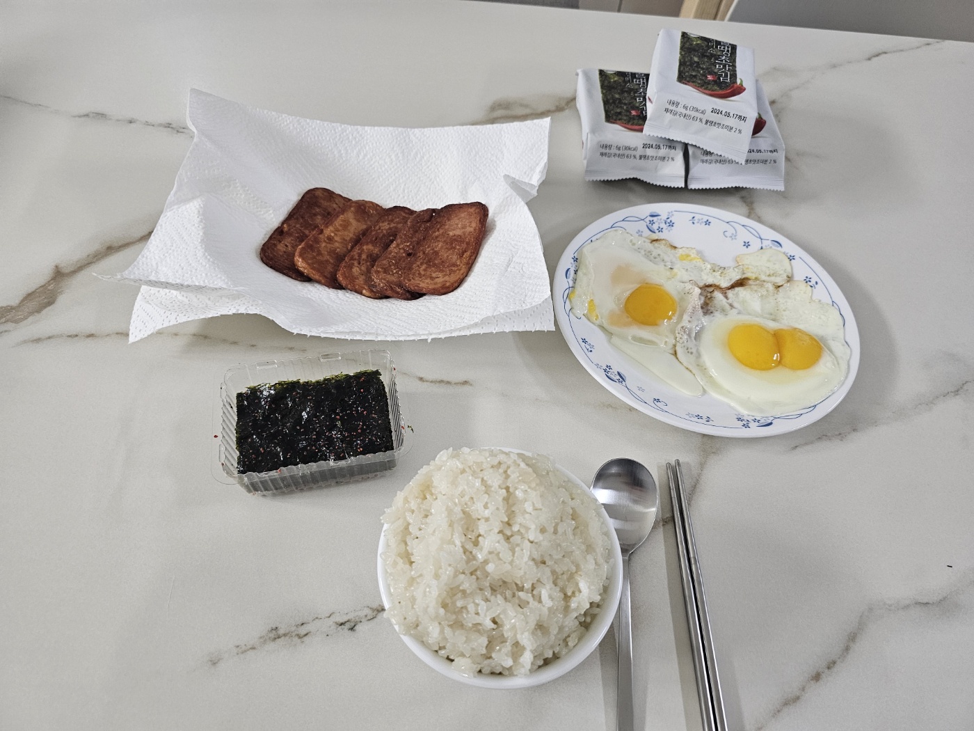 스팸과 밥을 잘 옮겼습니다.