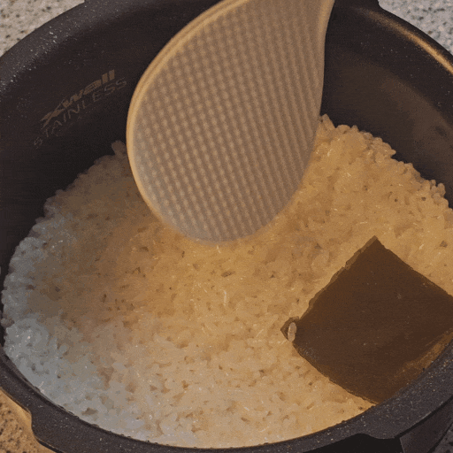 다시마 걷어내고 밥을 뒤집어가면서 잘 섞어줍니다.