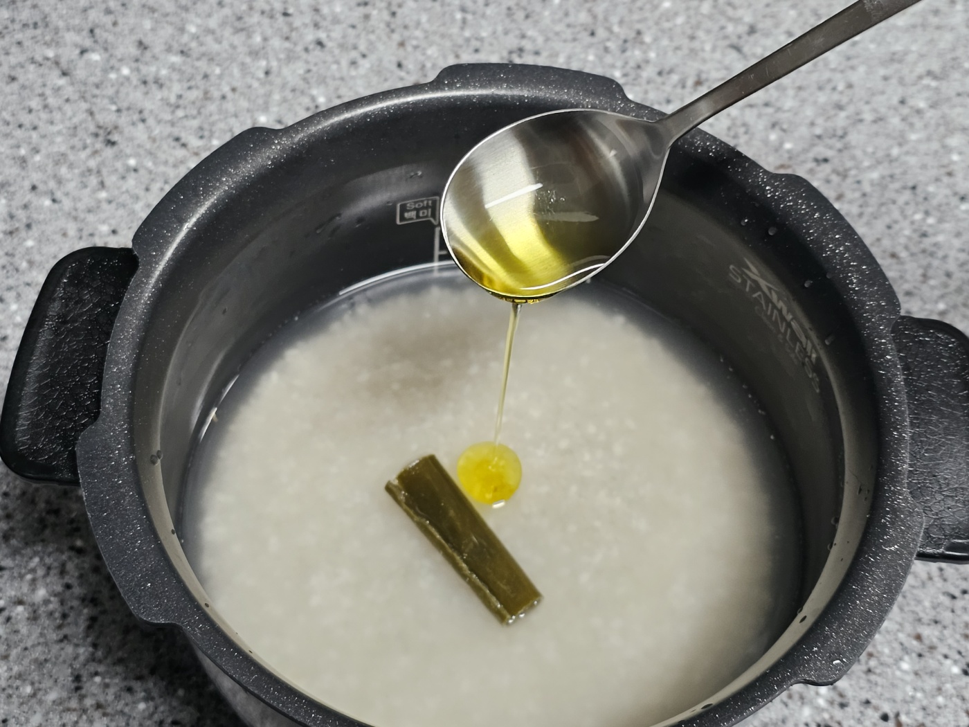 올리브오일을 한 숟갈 넣습니다.