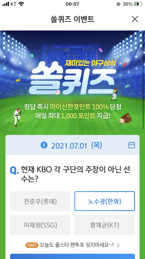 [짧은생활정보]7월 1일 신한 쏠 야구상식 쏠퀴즈 정답 작성자금자빱|작성시간21.07.01|조회수238 목록 댓글 10 글자크기 작게가 글자크기 크게가 노수광(한화) 다음검색 현재 게시글 추가 기능 열기 북마크 공유하기 신고 센터로 신고 댓글 댓글 10 댓글쓰기 답글쓰기 댓글 리스트 작성자Arden | 작성시간 21.07.01 😁💜🤨💜따냥고🤨♥️🤨♥️ 작성자늘해랑 | 작성시간 21.07.01 따냥고 💙 작성자그린 | 작성시간 21.07.01 따냥고! 작성자뭐먹어 | 작성시간 21.07.01 따냥고! 작성자컵누들우동맛 | 작성시간 21.07.01 따냥고 ⚾️ 댓글 전체보기