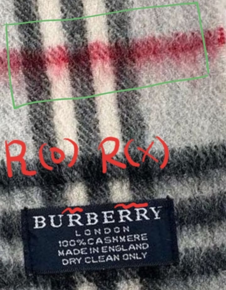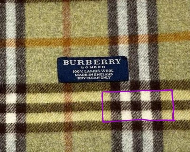 1. 버버리 머플러를 세로로 반 접었을때 어긋나는거 없이 무늬가 일치해야함.