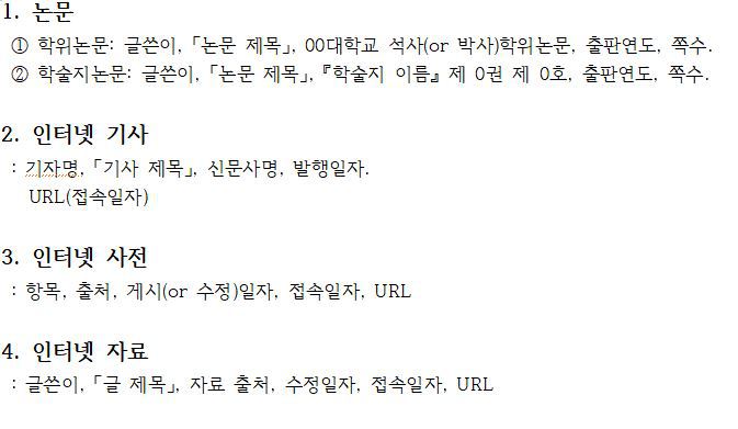 시간이 된다면 참고문헌 표기법도 함 가져올게~~