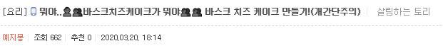 예지몽, 「뭐야..👤👥바스크치즈케이크가 뭐야👥👥 바스크 치즈 케이크 만들기!(개간단주의)」, 다음카페 밀리토리네, 2020. 03. 20, 2020. 03. 23, http://cafe.daum.net/baemilytory/91cb/1917