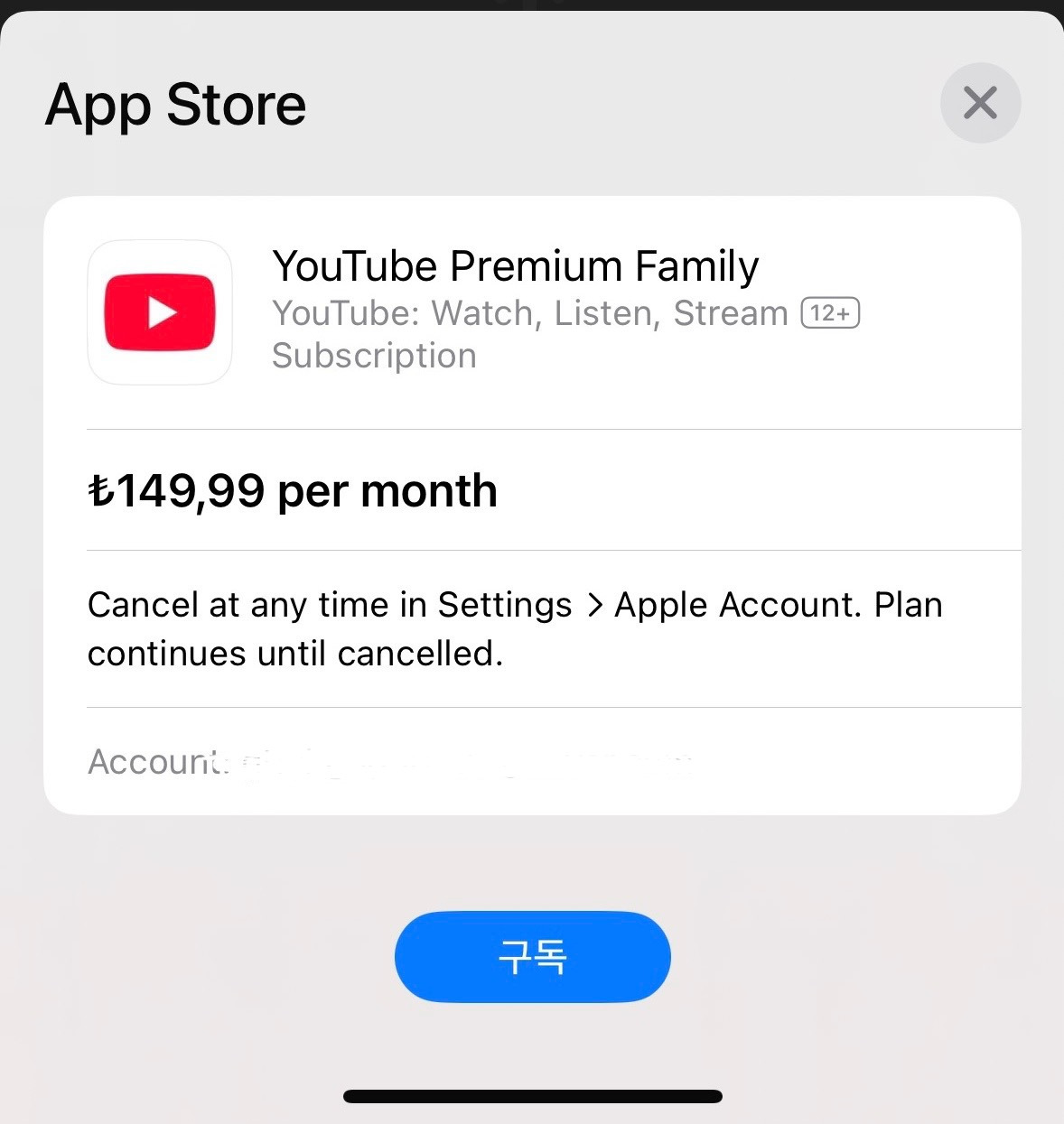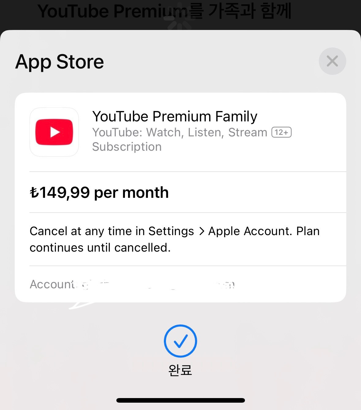 그럼 가격이 뜨는데 가족 계정의 경우 무려 149,99 리라