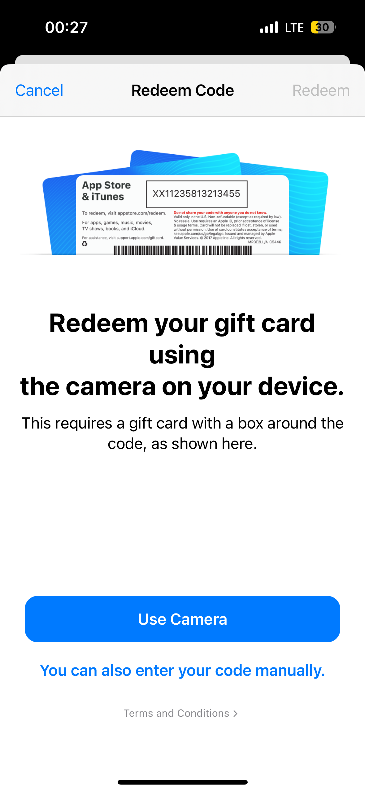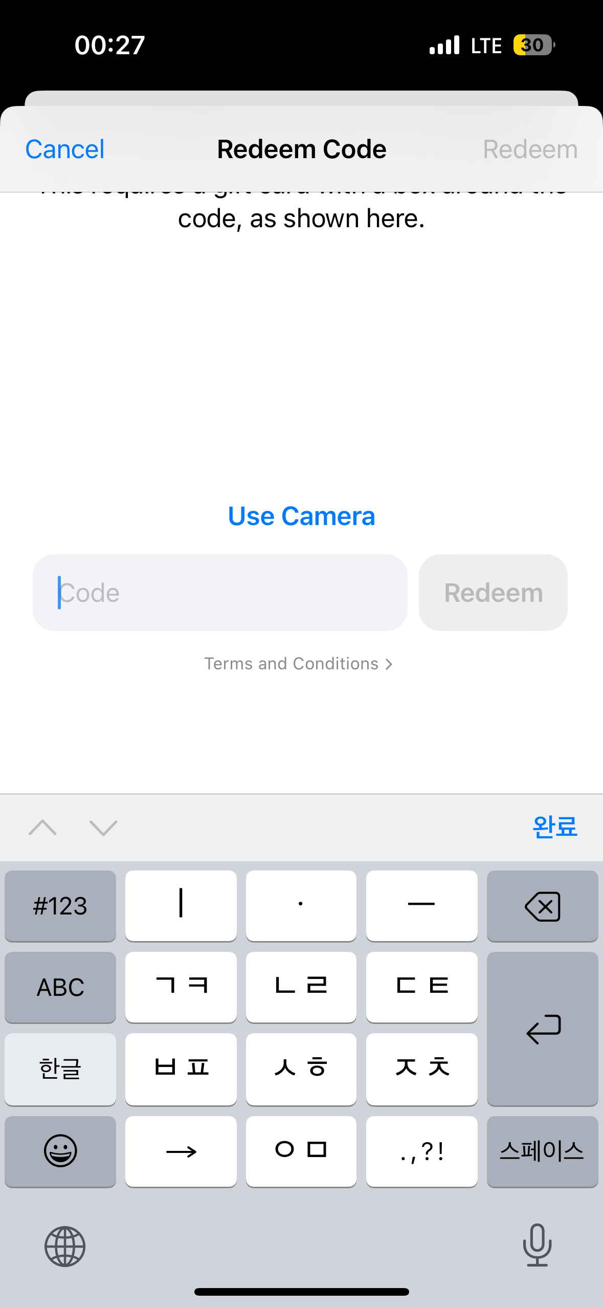 Redeem Gift Card or Code를 눌러서