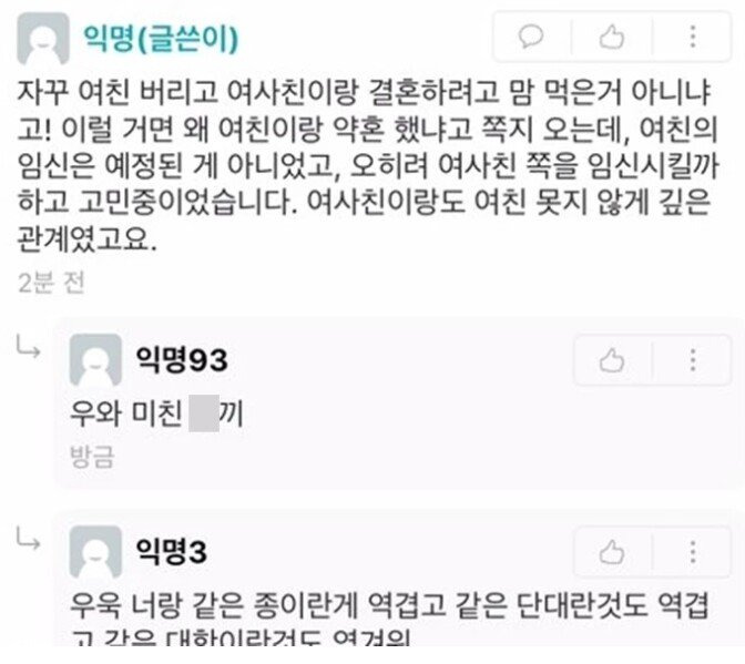 단대가 단국대는 아닌것 같어...마지막 댓글에 같은 대학인것도 짤린것 보면 같은 단과대인게 역겹다는 말 같잔아... 근데 내용 진짜 우욱이다