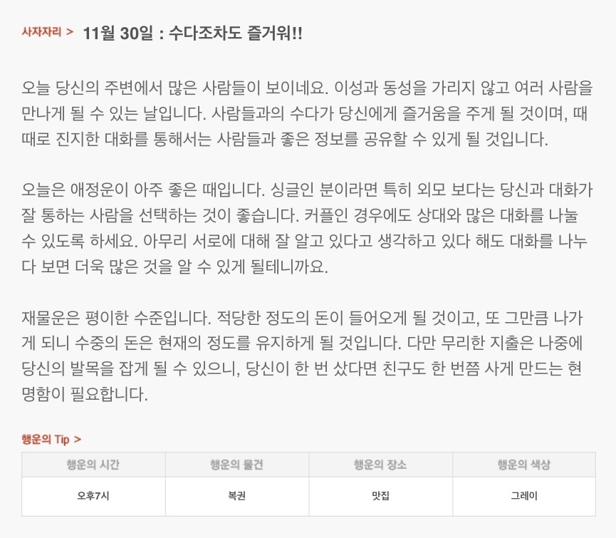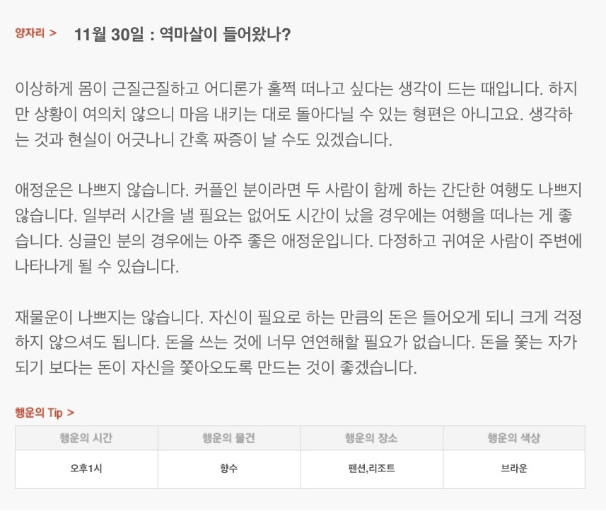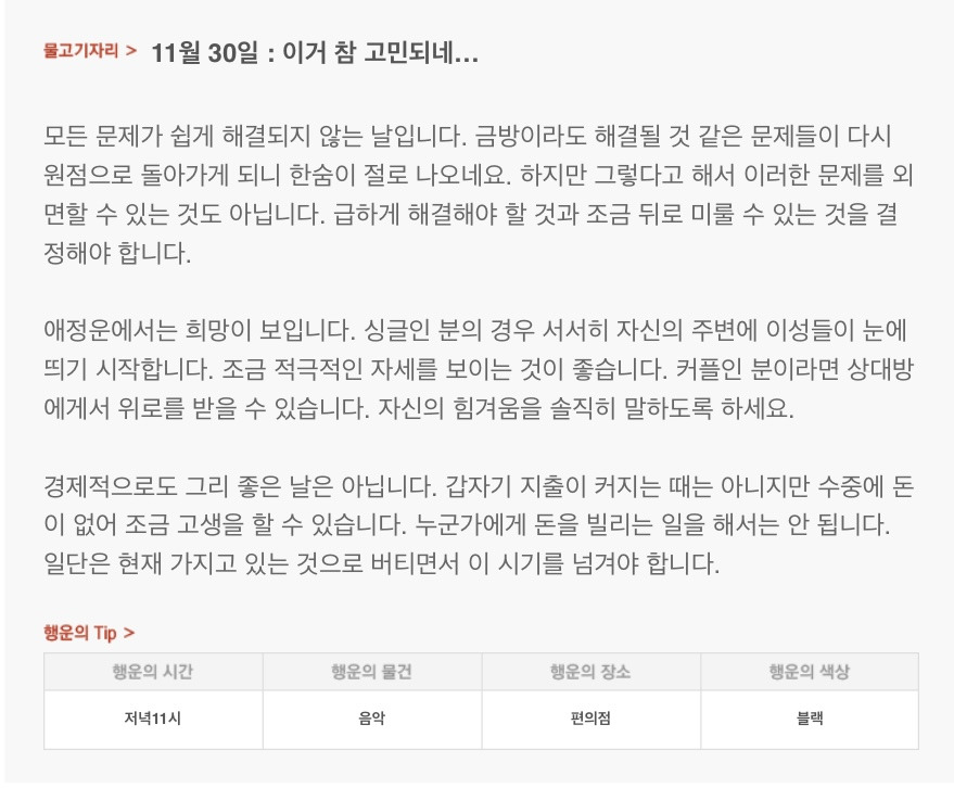 [기타]하루 전에 미리 보는 11월 30일 산수도인 별자리 운세 작성자JUNKYU|작성시간24.11.29|조회수764 목록 댓글 31 글자크기 작게가 글자크기 크게가 출처: 산수도인 다음검색 현재 게시글 추가 기능 열기 북마크 공유하기 신고 센터로 신고 댓글 댓글 31 댓글쓰기 답글쓰기 댓글 리스트 작성자십이월 | 작성시간 24.11.30 복채 작성자만두맛있어 | 작성시간 24.11.30 복채🍀 작성자아쟈 | 작성시간 24.11.30 복채 작성자lucasbergvall | 작성시간 24.11.30 복채 따냥고 작성자빵쟁이 | 작성시간 24.12.01 복채 댓글 전체보기