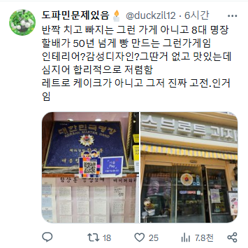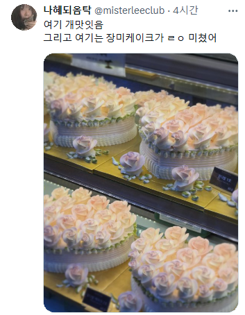 [스크랩] [기타]서울이라면 강북 쌍문역에 있는 50년된 제과명장 함스브로트에서 키리쉬 포레누아 케이크를 드십쇼 작성자과자|작성시간25.04.04|조회수3,934 목록 댓글 6 글자크기 작게가 글자크기 크게가 출처: https://x.com/duckzil12/status/1907965494541562367 한국에 16명밖에 없는 제과명장 중 1명 인용 다음검색 스크랩 원문 : *여성시대* 차분한 20대들의 알흠다운 공간 현재 게시글 추가 기능 열기 북마크 공유하기 신고 센터로 신고 댓글 댓글 6 댓글쓰기 답글쓰기 댓글 리스트 삭제된 댓글입니다. 답댓글 작성자존나힘든데그냥그만들좀하면안되요? | 작성시간 25.04.04 저 키리쉬 많이 달아??? 작성자그랜저 | 작성시간 25.04.04 가봐야지 룰루(개 멀리살지만…) 작성자당니귀 | 작성시간 25.04.04 여기 맛있음 작성자망곰이콧물 | 작성시간 25.04.04 주말에 친구네 집들이 가는데 사보ㅏ야ㅑ겠드다 댓글 전체보기