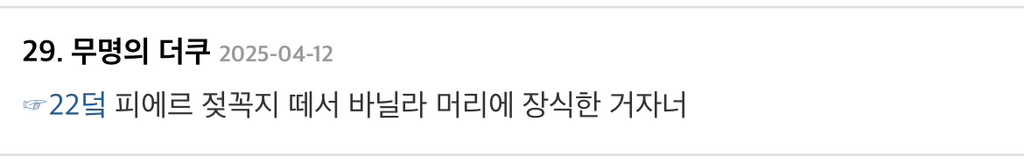 [유머]19?짝남 좋아했는데 작성자춤쳐|작성시간25.04.14|조회수1,360 목록 댓글 6 글자크기 작게가 글자크기 크게가 다음검색 현재 게시글 추가 기능 열기 북마크 공유하기 신고 센터로 신고 댓글 댓글 6 댓글쓰기 답글쓰기 댓글 리스트 작성자맛탕 | 작성시간 25.04.14 바닐라 머리장식을 위해 피에르 5명이 희생됨 작성자황후 | 작성시간 25.04.14 시발ㅋㅋㅋㅋㅋㅋㅋㅋㅋㅋㅋㅋㅋㅋㅋ 작성자주낙 | 작성시간 25.04.14 ㅋㅋㅋㅋㅋㅋㅋㅋㅋㅋㅋㅋㅋㅋㅋ 작성자정선나간신비 | 작성시간 25.04.14 피에르 젖꼭지 떼서 바닐라 머리에 장식한 거자너 작성자양재원 | 작성시간 25.04.14 바닐라 머리장식을 위해 피에르 5명이 희생됨 댓글 전체보기