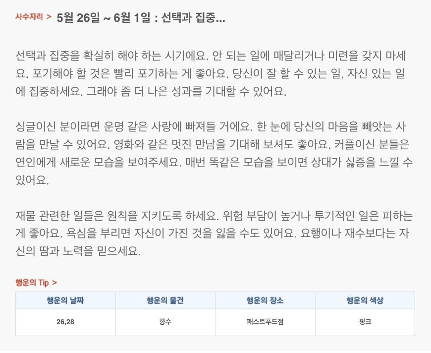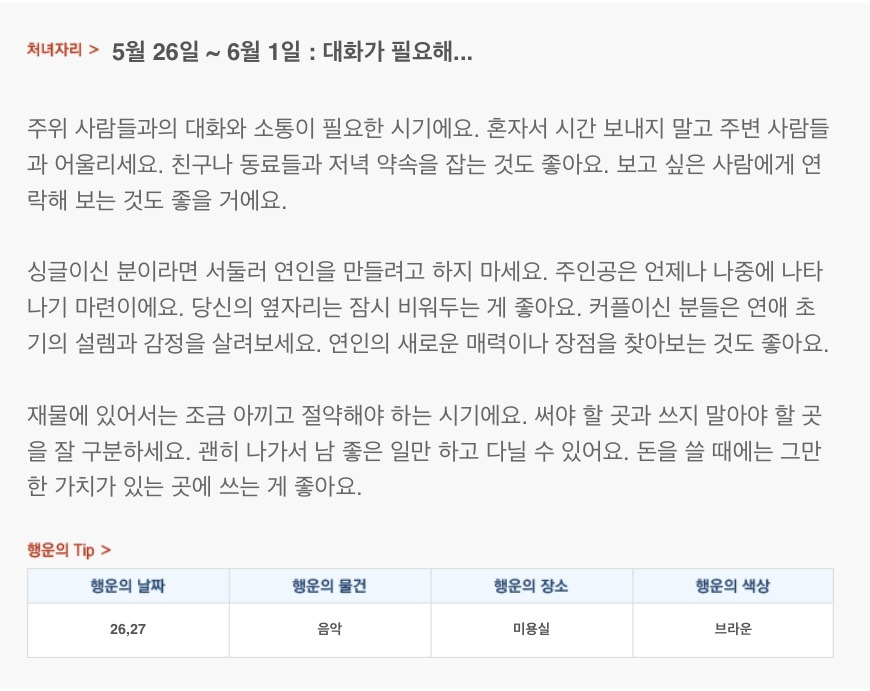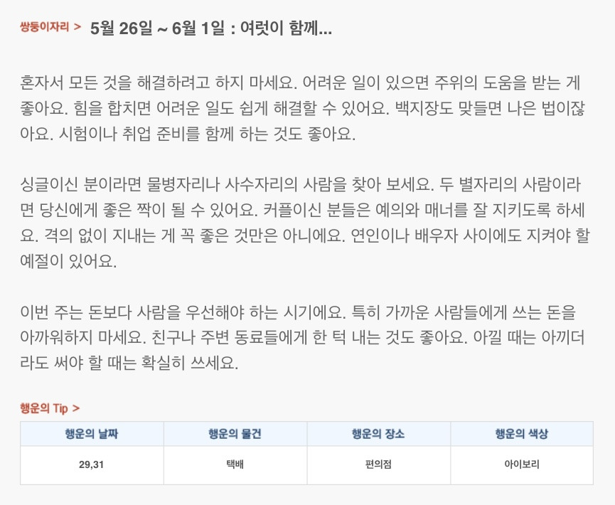 알 수 없는 동아리⠀ [기타]하루 전에 미리 보는 5월 5주차 산수도인 별자리 운세 작성시간25.05.25|조회수4,314 목록 댓글 58 글자크기 작게가 글자크기 크게가 출처: 산수도인 다음검색 현재 게시글 추가 기능 열기 북마크 공유하기 신고 센터로 신고 댓글 58 댓글 리스트 작성시간 25.05.26 복채 작성시간 25.05.26 복채 작성시간 25.05.26 복채 작성시간 25.05.27 따냥고 복채 작성시간 25.05.27 복채냥고 카페 방문해 더 많은 댓글 만나기!