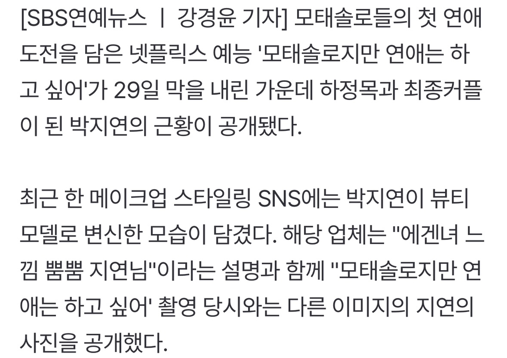 [기타]'모태솔로지만' 지연, 뷰티 모델로 변신 근황...정목과 현커 여부는 궁금증 작성자입을 앙 다문 고양이|작성시간25.07.30|조회수3,775 목록 댓글 7 글자크기 작게가 글자크기 크게가 출처 https://m.entertain.naver.com/ranking/article/416/0000315788'모태솔로지만' 지연, 뷰티 모델로 변신 근황...정목과 현커 여부는 궁금증여기를 눌러 링크를 확인하세요m.entertain.naver.com 다음검색 현재 게시글 추가 기능 열기 북마크 공유하기 신고 센터로 신고 댓글 댓글 7 댓글쓰기 답글쓰기 댓글 리스트 작성자Be My Light | 작성시간 25.07.30 현커인지 알려줘요 작성자신승호 | 작성시간 25.07.30 제발 헤어지지말아주시술 답댓글 작성자속수무책 | 작성시간 25.07.30 왜? 잘 어울려? 답댓글 작성자속수무책 | 작성시간 25.07.30 세덥 아하 호기심에 눈 먼 이야기 작성자오볽 | 작성시간 25.07.30 현커인지 알려줘요 댓글 전체보기