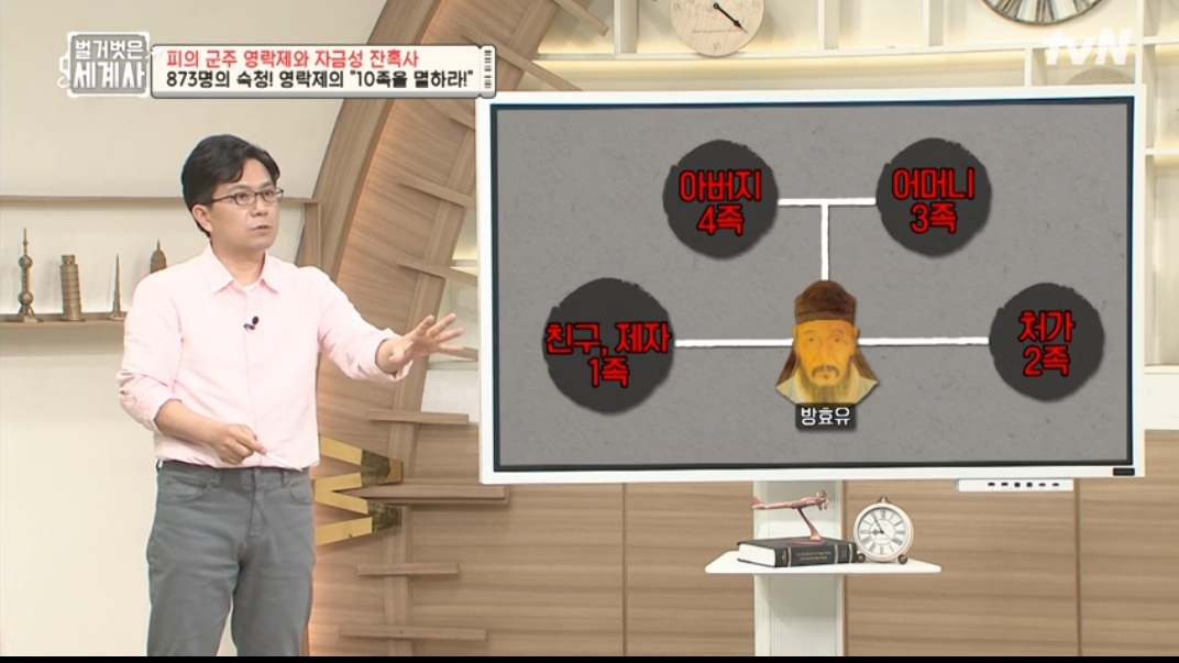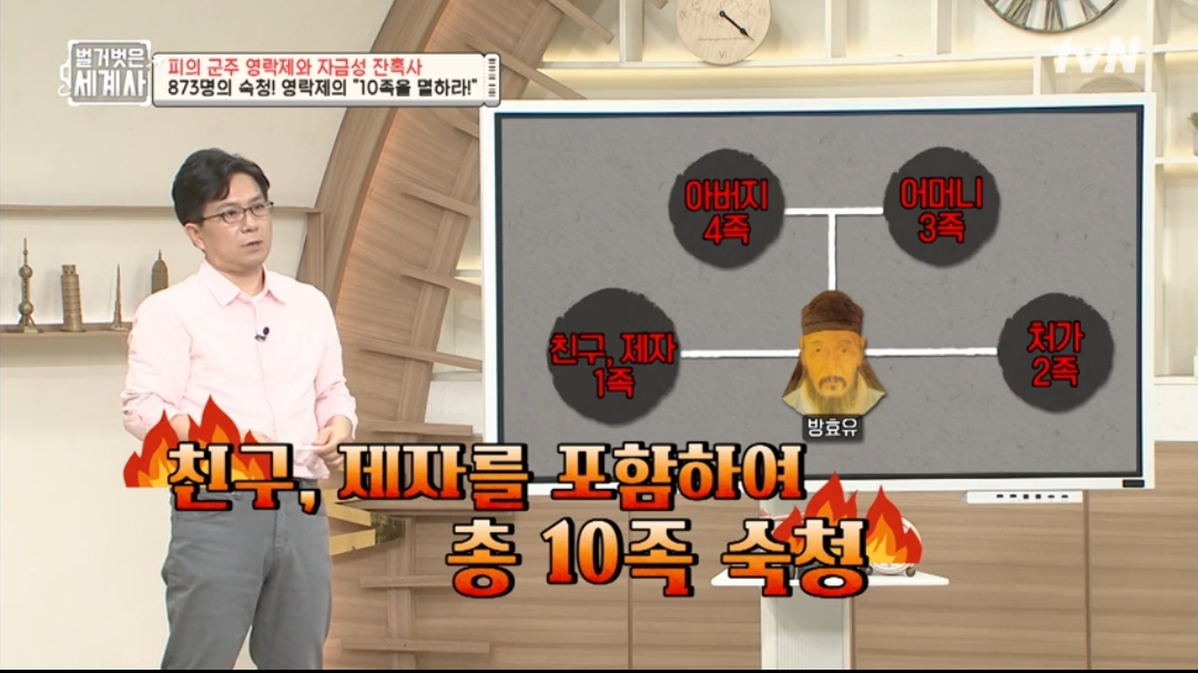 원래 중국에선 9족을 멸한다 는 있어도 10족까진 안갔단 말이죠?? 영락제가 방효유에게 니 9족 멸한다! 협박 했더니 강직했던 효유 말하길